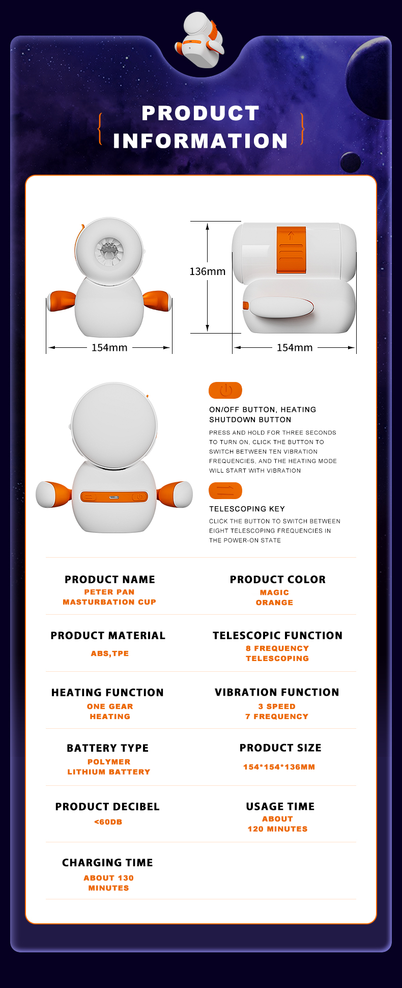Peter Pan Telescopic Vibrating Heating Male Masturbator