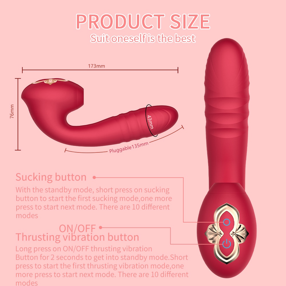 ��3 IN 1 G Spot Vibrator with 20 Modes for Women Pleasure��This massager toy is a 3 in 1 sucking toy + thrusting + vibrator.The thrusting vibrator comes with 10 speed sucking modes and 10 thrusting vibration frequencies. Use the vibrating toy solo or with your partner.Your sex life will be mixed with extra fun and passion.The massager toy vibrator will make you feel like you are receiving the best oral sex you've ever had!