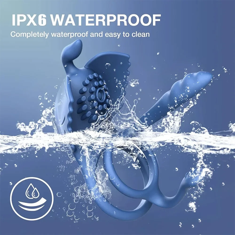 Experience enhanced pleasure with this 3-in-1 vibrating penis ring designed for dual stimulation and delayed ejaculation control. Crafted from medical-grade, body-safe silicone with ABS components, this device offers a comfortable fit and durable performance for intimate sessions. Featuring multiple vibration modes, it targets both penile and clitoral stimulation simultaneously, providing intense sensations for both partners. With a perfect size of 110*46mm and gross weight of 100g, this ring is easy to operate and clean, supporting a rechargeable built-in lithium battery with 2-hour charging time and 1-hour using time. Available in black and blue, this versatile adult wellness product enhances performance, endurance, and overall sexual satisfaction through innovative dual-action technology.