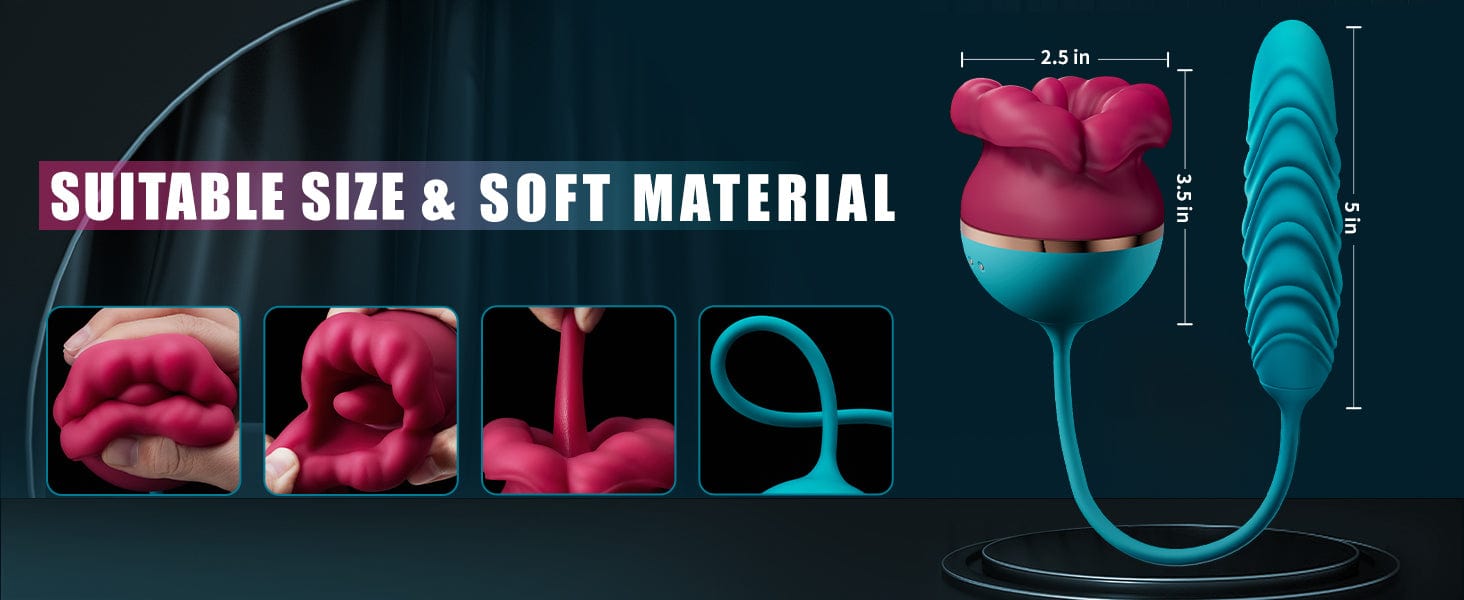 • ��Mouth-shaped stimulator with 9 Tongue Licking modes��Indulge in the extraordinary pleasure of the large mouth-shaped stimulator.The rose sex toy boasting 9 Tongue Licking. Experience the sensational caresses. gentle swirls. and intense rotations that simulate the pleasures of oral stimulation. Let this innovative design transport you to new realms of ecstasy.