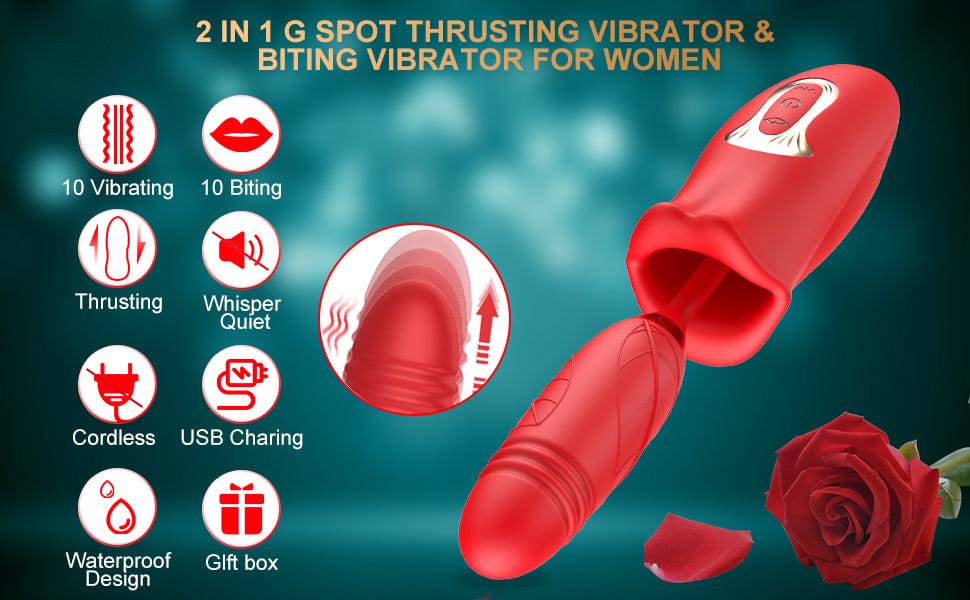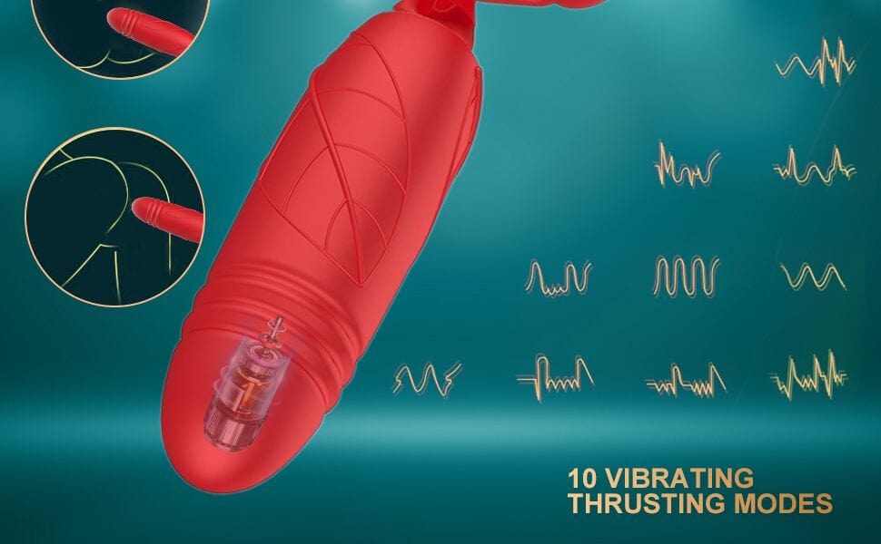 Rose Muncher Lip Tongue Suction Vibrator With Thrusting Dildo Vibrator