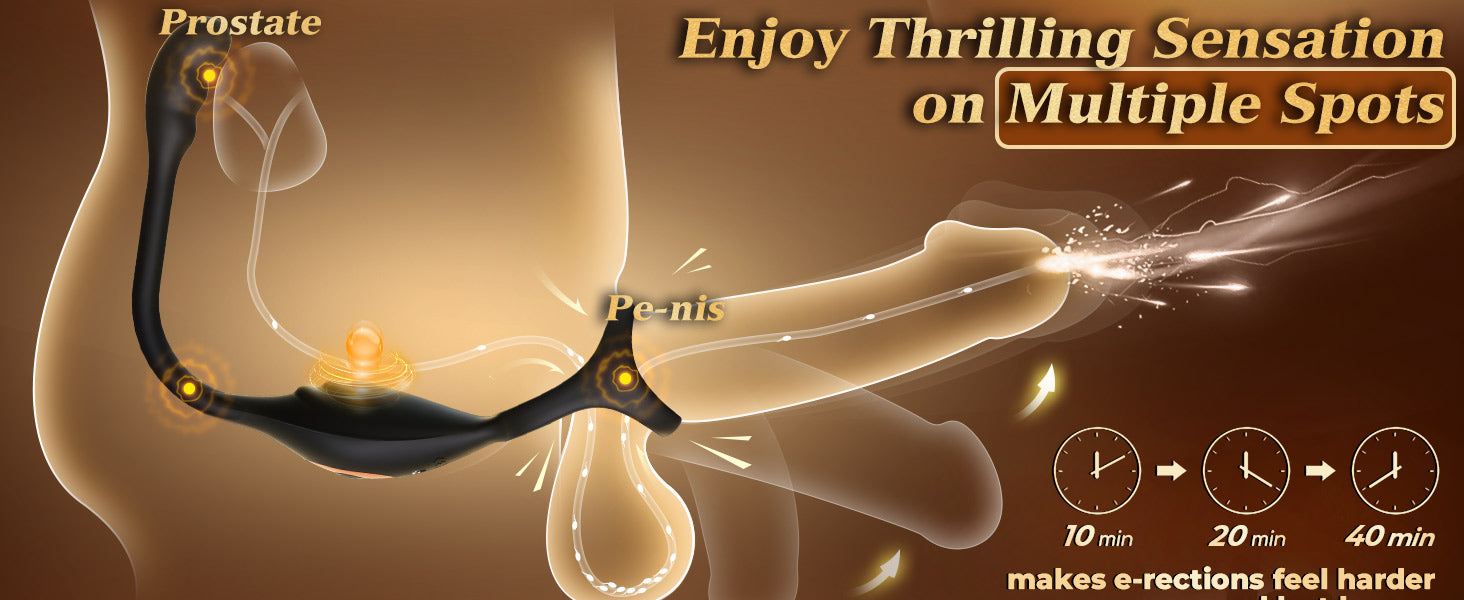 Experience unparalleled pleasure with this 3-in-1 male sex toy, designed for solo play or shared intimacy. This innovative device combines a vibrating cock ring, prostate massager, and anal plug to deliver triple stimulation to the penis, perineum, and prostate simultaneously. Whether you're exploring new sensations or enhancing your pleasure, this multifunctional design ensures maximum satisfaction in one powerful device.