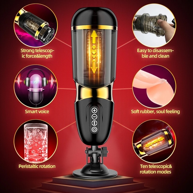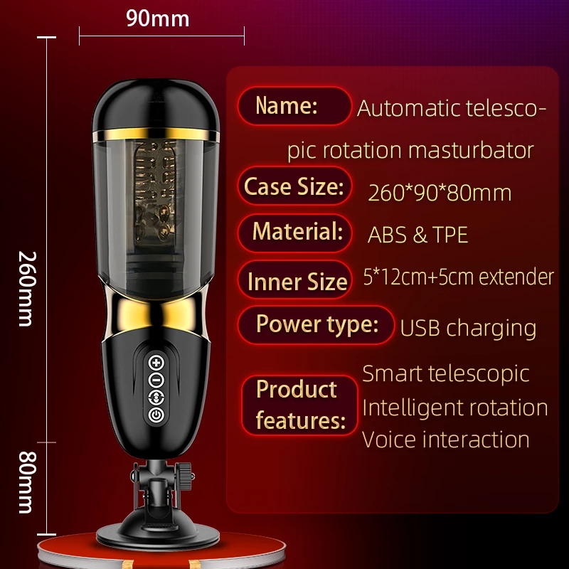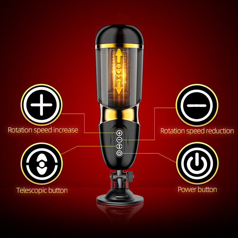 In order to meet the needs of more customers. we developed the second generation. A groove is designed on the black shell. The ergonomic design makes the handheld more comfortable. Even if the hands are wet due to masturbation. the toy is not easy to fall. The toy has 6 telescopic modes. but this is not a boring toy with a telescopic function. Every time you switch the telescopic mode. you can feel the change of rotation. Particles of different sizes no longer rub your penis up and down. Change a different way to start rotating your penis left and right. just like a woman suddenly changing sex positions. The excitement makes you want to curl your toes. A powerful suction cup is provided in the package. Let the toy stick to any smooth surface to provide you with happiness. The particles inside the toy are also upgraded. and the scattered distribution of large and small particles gives you a stronger sense of pleasure.