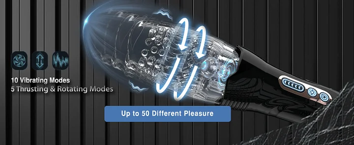 • Powerful 10 Vibrating Modes - The vibrator of this automatic male masturbator is built into the silicone sleeve for maximum. most exciting pleasure. Up to 10 different frequency vibration modes. with 5 thrusting and rotation modes. you are completely free to play and get 50 different stimulation experiences from the sex toys. it's intoxicating and stimulatin