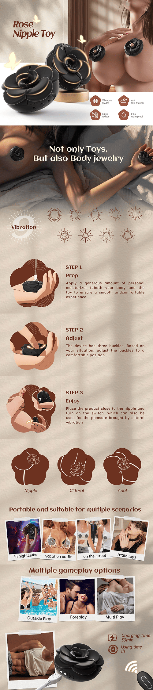 The Black Rose Nipple Clamps feature a beautifully crafted rose shape, combining both functionality and aesthetics. Not just an adult toy, but a piece of elegance designed to enhance your BDSM and sex games. Whether you're exploring new sensations or indulging in intimate play, these clamps bring a touch of class to your experience.