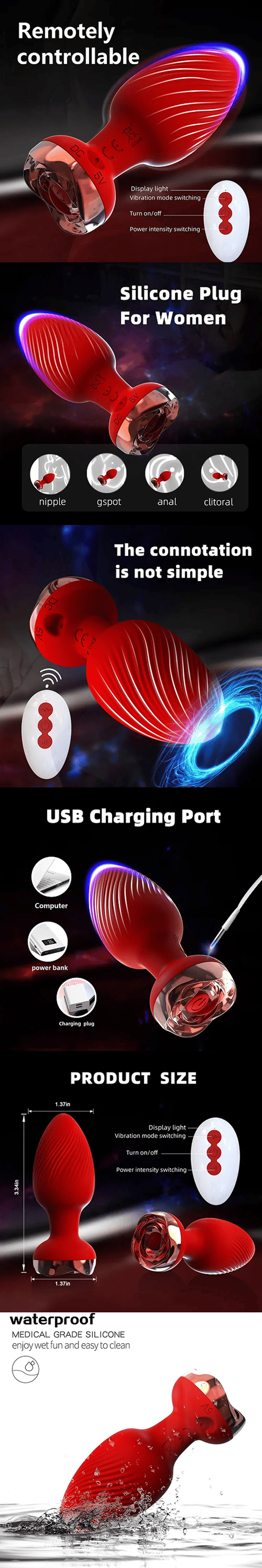 Rose - Anal Plug Remote Control Rose Butt Plug