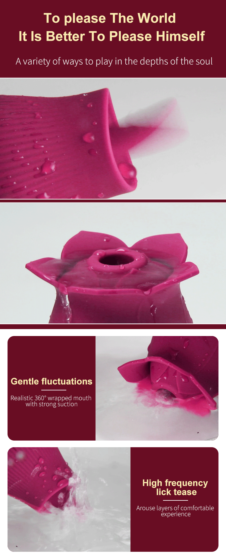 ❤ Safe & Silky Smooth Silicone �C The rose toy is made of medical-grade silicone. which is hygienic and odorless. This silky-touch rose clit sucker would bring more comfort to your private parts.