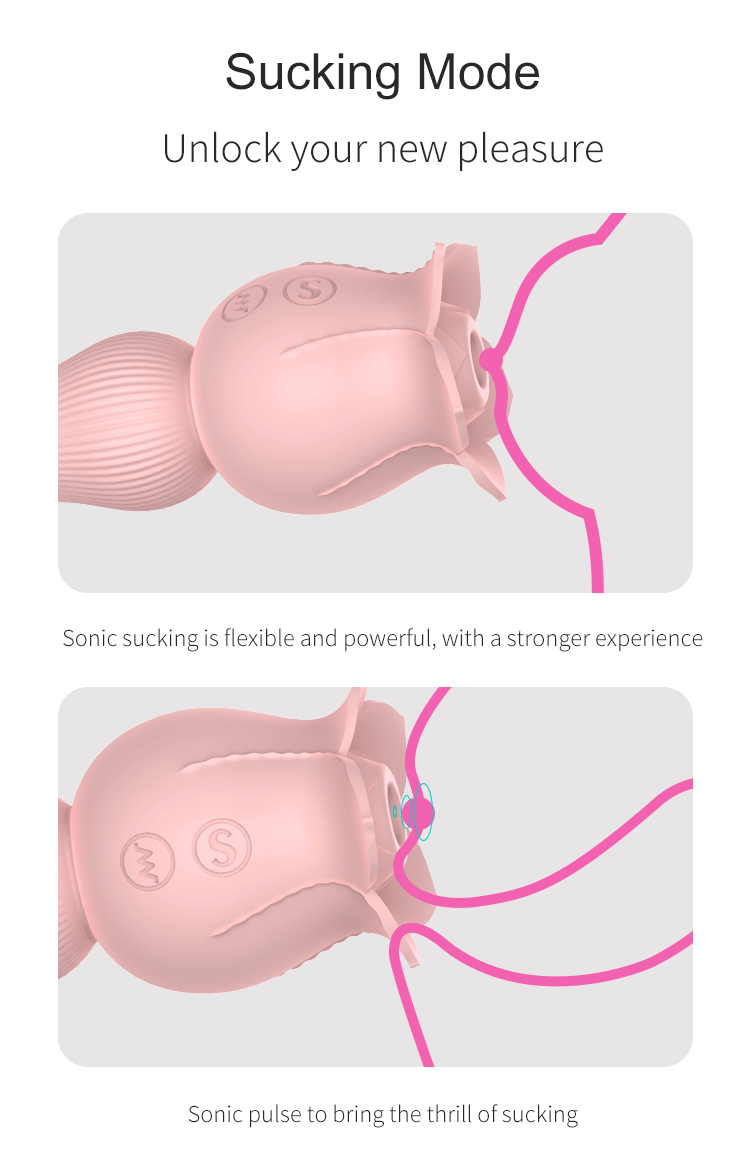 ❤ 7 Intense Sucking & tongue licking Frequencies �C The rotating airflow generated by the internal vibration sucks and teases the clitoris. combining the flickering tongue on the other end helping you to reach orgasm in a short time. With cycling the clicks on the button. you can easily change the fun with different suctions and different licking.