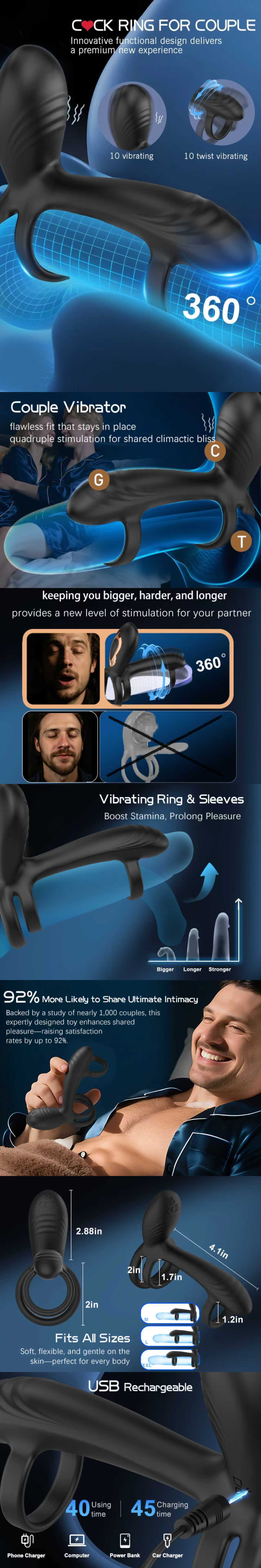 Vibrating Cock Ring with 10 Modes for G-Spot & Clitoral Stimulation