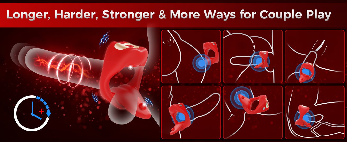 • All Climax in Sex Positions: No matter which sex positions you like, our product could accurately stimulate your sweet points, giving you and your partner overwhelming vaginal and anal climax. Different from other complex cock rings which could only stay in the root of the cock and don't support to adjust accordingly. Our cock ring is simple in design, it's flexible and easy to use in all sex positions, an ideal tool for your sex life